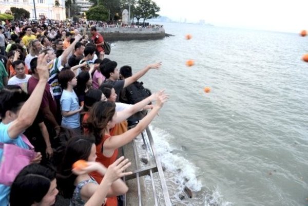 Jadi untuk perayaan malam ini, akan ada tradisi di mana perempuan cina akan baling oren ke dalam sungai atau air dengan harapan lelaki yang diminati akan mengutipnya dan dapat menghubungi perempuan tersebut.